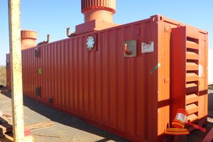 CONTAINER FIRE WATER PUMP SYSTEM, INCLUDING 40FT HI CUBE INSULATED SHIPPING CONTAINER, 11/2012 FBXU 1449640, WITH 2 X DOOSAN, 6 CYLINDER DIESEL ENGINES (MOD#D1146T, SER#220747, OPT EADOA - SER#220745) 2 X EATONORM WATER PUMPS, 2 X DIESEL FUEL TANKS, 2 X CONTROL BOXES) (SD0469)