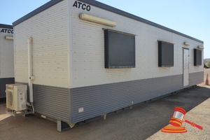 TRANSPORTABLE BUILDING, ICE ROOM, ATCO, 2013, 7.3M X 3.4M X 3.6M INCLUDES 2 X ICE DISPENSERS, WATER DISPENSER, HAND WASH FACILITIES AND SPLIT SYSTEM AIR CON, 37132999. (TB-394) (OMR#00112) (MP77#5854)