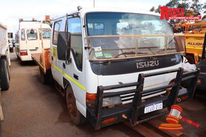 1998 ISUZU NPS TRAY TOP, WHITE, 4X4, MANUAL, P/S, A/C, REG# LG3278 LIC: 5.10.18, ODO# 19,923 KMS SHOWING ON CLOCK (NEW SPEEDO) VIN# JAANPS71LW7100088, ENG# 4HG1590149, BULLBAR, TOW HITCH, WORKLIGHTS, TOOL BOX, SPARE TYRE, FL# 05092, KEY# 159 (W7509)