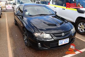 02/2005 HOLDEN MONARO VZ CV8 2 DOOR COUPE, BLACK, AUTO, P/S, A/C, 5.7 V8 PETROL, REG# KBC029L (LIC: 20.8.18), ODO# 156,294 KMS SHOWING ON CLOCK, VIN# 6G1ZX14F85L399054, ELECTRIC SEATS, 18" ALLOYS, GPS DAMAGE TO FRONT RH HEADLIGHT & BONNET, RH SIDE SKIRTING MISSING, 2 REVERSE SENSORS MISSING, SMALL DENT PASSENGER DOOR, (DR#4107) (W7549)