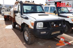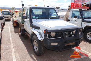 2010 TOYOTA LANDCRUISER TRAY TOP, WHITE, 4X4, MANUAL, P/S, A/C, V8 TURBO DIESEL (REG# UNLIC) ODO# 137,421 KMS SHOWING ON CLOCK, VIN# JTELV71J500019038, SMART BAR, SPOTLIGHTS, WORKLIGHTS, TOOLBOX, BEACON, FIRE SUSPRESSION, FL# BV088, KEY# 85 (W7501)