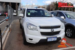 03/2013 HOLDEN COLORADO TRAY TOP, WHITE, 4X4, AUTO, P/S, A/C, 2.8 CTDI DIESEL (REG# UNLIC) ODO# 131,840 KMS SHOWING ON CLOCK, VIN# MMU147DH0DH635593, ENG# A9K6122541108, BEACON, SPOTLIGHTS, SPARE TYRE, SIREN, TOW BAR, FL# LV4473, KEY# 150 (W7445)