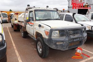 2009 TOYOTA LANDCRUISER TRAY TOP, WHITE, 4X4, MANUAL, P/S, A/C, V8 TURBO DIESEL, REG# UNLIC, ODO# 186,797 KMS SHOWING ON CLOCK, VIN# JTELV71J100013933, BULLBAR, SPOTLIGHTS, WORKLIGHTS, BEACON, TOOLBOX, TOWHITCH, SPARE TYRE, REAR WINDOW GUARD, FL# VL8123, PRDA# M13894, KEY# 12 (W7573)