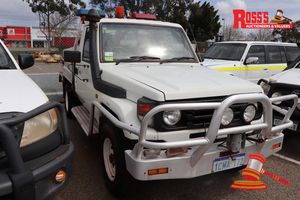 2006 TOYOTA LANDCRUISER HZJ79 SERIES UTILITY, WHITE, 4X4, MANUAL, P/S, A/C, 6 CYL DIESEL TURBO, (REG#UNLIC) ODO# 146,326 KMS SHOWING ON CLOCK, VIN# JTELC71J300013843, ENG# 1HD0303047, BULLBAR, SCRUB BAR, FRONT SPOTLIGHTS, BEACON, EMERGENCY LIGHTS, SIREN, FLAG POLE, WATER TANK, 2 X STAINLESS STEEL TOOLBOXES WITH FLAT HOSE, WORKLIGHTS, FIRE REEL & NOZZLES, TOWBAR (NO HITCH) YANMAR DIESEL MOTOR & PUMP, FL# 03H2262, (BENT TAIL SHAFT, FOAM SYSTEM U/S, DONT USE PUMP) S44#37225, KEY# 11 (W7565)