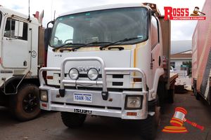 2008 ISUZU FTS 800 TRAY TOP, WHITE, 4X4, MANUAL, P/S, A/C, DIESEL, REG# 1DAN762 LIC: 1.5.19, ODO# 60,194 KMS SHOWING ON CLOCK, VIN# JALFS34L87000162, ENG# 6HK1474124, ALUMINIUM BULLBAR, SPOTLIGHTS, BEACON, ROPS, SPARE TYRE, REVERSING CAMERA, FIRE SUPPRESSION SYSTEM, 6M TRAY APPROX, STEP ACCESS (PASSENGER SIDE MIRROR MISSING) KEY# 136 (W7542) (A/NO-S354)