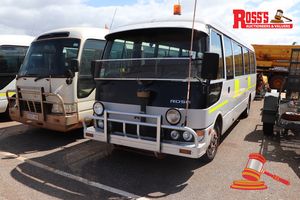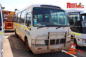 09/2012 TOYOTA COASTER BUS, WHITE, 2 AXLES, MANUAL, P/S, A/C, DIESEL 4 CYL 4000CC, REG#1ECF144 LIC: 18.12.18, ODO# 57,674KMS SHOWING ON CLOCK, VIN# JTGFP518404501783, ENG# N04CUH16306, 20 SEAT CAPACITY, INTERNAL ROPS, ALUMINIUM ROO BAR, REAR MOUNTED RHINO RACK WITH MINE SPEC LIGHTING, FL# SC0847, KEY#56 (W7463)