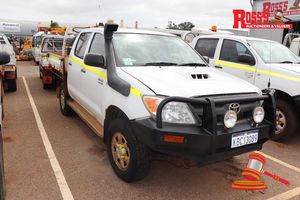 2008 TOYOTA HILUX DUAL CAB, WHITE, 4X4, MANUAL, P/S, A/C, DIESEL (REG#UNLIC) ODO# 45,424 KMS SHOWING ON CLOCK, VIN# MR0FZ22G601022070, BULLBAR, WORKLIGHTS, TOW HITCH, SPARE TYRE, INTERNAL ROLLBAR, REAR WINDOW GUARD, TRAY MOUNTED VICE, BEACON (DRIVER'S & PASSENGER SIDE MIRROR MISSING) FL# VL8143, PRDA#M13893, KEY# 14 (W7580)