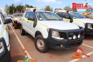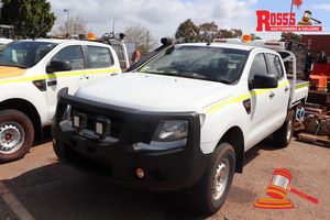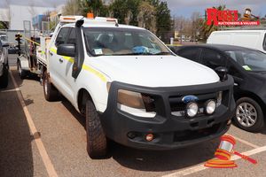 12/2012 FORD RANGER 2 DUAL CAB TRAY TOP, WHITE, 4X4, MANUAL, P/S, A/C, 3.2 6 SPEED DIESEL, REG# 1EDG947 LIC: 29.1.19, ODO# 78,377 KMS SHOWING ON CLOCK, VIN# MNAUMFF50CW151418, ENG# P5AT1035464, ROOF RACK, TOOL CHEST, SPARE TYRE, BEACON, ROLLCAGE, 2 WAY RADIO, FL# SC-0937, KEY# 60 (W7455)