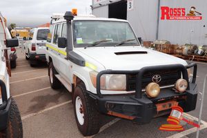 2009 TOYOTA LANDCRUISER UTILITY, WHITE, 4X4, MANUAL, P/S, A/C, V8 TURBO DIESEL, (REG#UNLIC) ODO# 237,610 KMS SHOWING ON CLOCK, VIN# JTELV71J500013112, ENG# 1VD0072044, BULLBAR, SPOTLIGHTS, SNORKEL, SIDE STEPS, LIGHT BAR, BEACON, SIREN, FLAGPOLE, UNDER CARRIAGE WATER TANK, TOW BAR (NO HITCH) LARGE EXPLOSIVES TOOLBOX, SIREN & ALERT BOX, EXTINGUISHER BRACKET (NO BATTERY) FL# 03H708, S44# 44545, KEY# 33 (W7561)