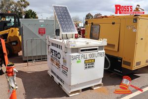 PETRO INDUSTRIAL SKID MOUNTED 1,000 LITRE BUNDED DIESEL FUEL TANK WITH SOLAR PANEL, 2 X BATTERIES, BATTERY MAINTENANCE CONTROLLER, FUEL PUMP, HOSE, NOZZLE, FUEL GAUGE, FIRE EXTINGUISHER, BEC 160, YOM: 2014, SERIAL NO: PC1100-117 (MP77#5824) (OMR#00081) (ITEM#6)
