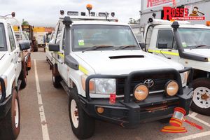 2010 TOYOTA LANDCRUISER TRAY TOP, WHITE, 4X4, MANUAL, P/S, A/C, V8 TURBO DIESEL, (REG#UNLIC) ODO# N/S, VIN# JTELV71J600017251, SMARTBAR, WORKLIGHTS, TOOLBOX, TOWBAR, SPARE TYRE, FIRE EXTINGUISHER (ENGINE DISMANTLED, NO RADIATOR) KEY# 97 (W7554)