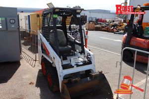 2011 BOBCAT S70 SKID STEER, WHITE, AWD, 3 CYL DIESEL (REG# UNLIC) ODO# 1249.1 HRS SHOWING, GENERAL PURPOSE BUCKET. LIGHT BEACON, ENG# BG3163, CH# A3W613988, (REAR ENGINE BAY GUARD DAMAGED, FRONT RIMS DAMAGED) FL# 13R520, S44# RITM2310894, KEY# 158
