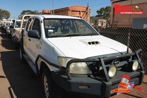 6/2007 TOYOTA HILUX DUAL CAB, WHITE, 4X4 MANUAL, P/S, A/C, 3LTR 4D4 TURBO DIESEL, BEACON ROLLOVER BAR INSIDE CAB, 2 X SPARE WHEEL, FIRE EXT, BULLBAR, DRIVING LIGHTS, SAFARI SNORKLE, ALLOY SIDE STEPS, DUAL BATTERIES, REG NO - KBC621E (LIC 31/7/19) ODO - 380,439KMS SHOWING, ENG NO - 1KD7343592, VIN NO - MR0FZ22G701153766 (DR#5027) (A/NO-LV470) RUST IN REAR TRAY AREA OF VEHICLE