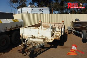 1990 CUSTOM DOG TRAILER WHITE, FIRE EXTINGUISHER, APPROX 1000LTR FIBREFURN TANK, APPROX 4000LTR DIESEL TANK, 2 X UNDER TRAY TOOLBOXES, SPARE WHEEL, REG NO - 9RC757 (LIC 31/10/18) VIN NO - 6J9T25000L2505527, STEEL DECKS 2.5 W X 5m L DRAW BAR 1.8m L (TL035) (DR#4187)