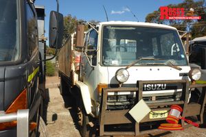 1989 ISUZU FLAT TOP, WHITE, 4X2 MANUAL, P/S, A/C, 6 CYLINDER, DIESEL, GATES, BULLBAR, DRIVING LIGHT, TOWBAR, 20FT CONTAINER LOCKS, REG NO - BD61 (LIC 7/1/19) ODO - 656,502KMS SHOWING, ENG NO - 65A1613181, VIN NO - JALFVR13HK3600024 (DR#5018)