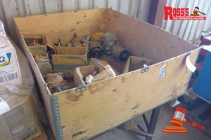WORKSHOP EQUIPMENT: Inc Welders, Rigid Pipe Threader, Power Pack Inc 4 Rams & Spreaders, Magnetic Drill Press, 6 X 50m Rolls Of 25mm Poly Pipe, 27 Pallets Of 1m x 400mm Steel Core Trays, 13 Pallets Of Vent Bags & Work Shop Shelving.