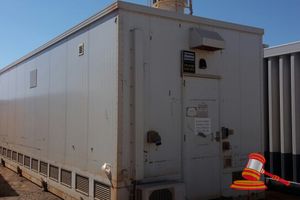 TELECOMMUNICATIONS HUT/SHELTER 9670mm X 3640mm INCLUDES TELECOMMUNICATIONS OPERATIONAL EQUIPMENT MITSUBISHI SPLIT SYSTEM AIR CONDITIONERS, AUTOMATIC FIRE SUPPRESSION UNIT (MP77#5979) (ITEM#27273)