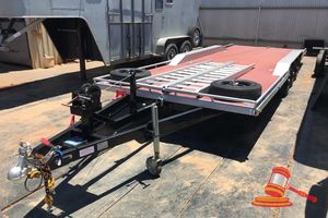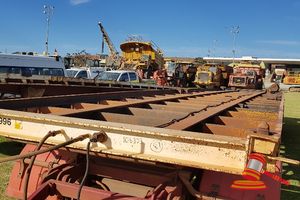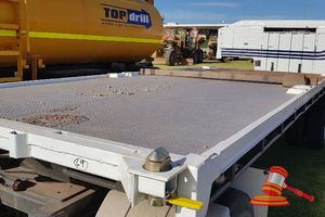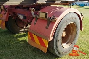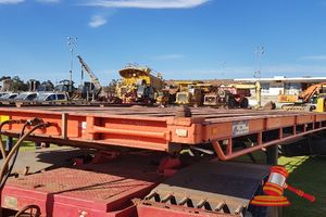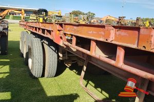 FLAT TOP, RED, DUAL AXEL, TOWED, CONTAINER TWIST LOCKS, RING FEEDER, SPARE TYRE, REG # 1TSH047 8/2/19 (DL#)