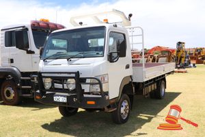 11/2013 MITSUBISHI FUSO CANTER 7/800 TRAY TOP WHITE 4X4 MANUAL, A/C, BULLBAR, ROPS, 5 SPEED MANUAL, REG NO - 1EMZ225 (LIC 13/5/19) ODO - 135,675KMS SHOWING, VIN NO - JLFFGB71E0KJ10409 (DR#)