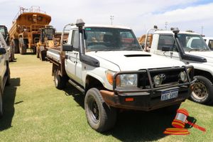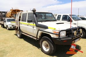 2013 TOYOTA LANDCRUISER 79 SERIES D/CAB T/TOP WHITE, 4x4, MANUAL, P/S, A/C, TURBO DIESEL, BULLBAR, SPOTLIGHTS, TOWBAR, SPARE TYRES x 2, UHF RADIO, REG # 1EKU937 EXP 8/2/19, ODO 170,335 KM SHOWING ON CLOCK, VIN # JTEBV71J704002004, ASSET # LV02 (DL#)