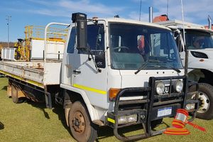 1990 ISUZU FSR500 TRUCK WHITE, MAN, P/S, AC, 6 BGI DIESEL, 6 METER STEEL TRAY WITH DROP SIDES, LONG RANG TANK, REG # 1BFN221 EXP 30/6/19, ODO 344,307 KMS SHOWING ON CLOCK (DL#)