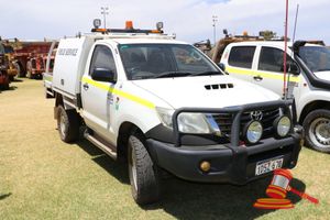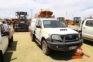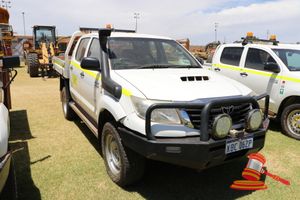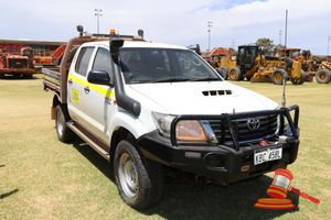 2012 TOYOTA HILUX DUAL CAB WHITE 4X4 MANUAL P/S, A/C DIESEL, BULLBAR,SPOTLIGHTS, TOWBAR, SPARE TYRES, INTERNAL ROLLOVER PROTECTION, REG NO - KBC062P (LIC 8/2/19) ODO - 159,426KMS SHOWING, VIN NO - MR0FZ22G101178114 (A/NO-LV01)