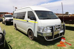 2014 TOYOTA COMUTR BUSTYP, WHITE, MANUAL, P/S, A/C, DIESEL, BULLBAR, BEACON, ISOLATOR, ROOF BAR LIGHTS, REG # 1ERI868 EXP 13/1/19, ODO 121986 KMS SHOWING ON CLOCK, ENG # 1KD2454248, VIN # JTFST22PX00021709, LIGHT RUST ON CHASSIS, SMALL CRACK FRONT WINDSCREEN (DL#)