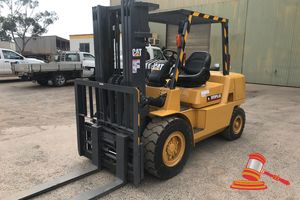 CATERPILLAR 45 FORKLIFT, YELLOW, AUTO, 6 CYLINDER, SCALES OPERATIONAL, REG # UNLIC, ENG # S6-SB1L, VIN # DP45KT, ODO 6816 HRS SHOWING ON CLOCK, SERIAL NO - T19C-P0068 (DL#)