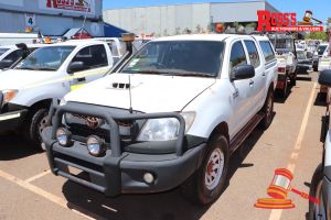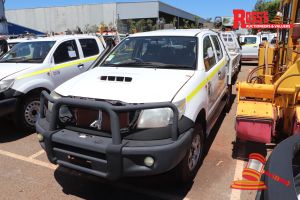 2008 TOYOTA HILUX DUAL CAB WELL BODY, WHITE, 4X4, AUTO, P/S, A/C, D4D, (REG#UNLIC) ODO# 179,401 KMS SHOWING ON CLOCK, VIN# MR0FZ22G201023314, SNORKEL, INTERNAL ROPS, FLEXIGLASS CANOPY, ROOF MOUNTED MINE SPEC LIGHTING, TOWBAR, ROOBAR, FL# WB1, FX03285925, KEY# 106 (W7722)