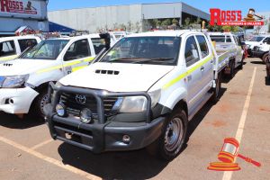 2012 TOYOTA HILUX SR DUAL CAB TRAY BACK, 4X4, WHITE, MANUAL, P/S, A/C, D4D, (REG#UNLIC) ODO# 101,556 KMS SHOWING ON CLOCK, VIN# MR0FZ22G401060848, TOWBAR, ROOBAR, INTERNAL ROPS, MINE SPEC ROOF LIGHTING, FL# PL91, FX03285926, KEY# 100 (W7719)