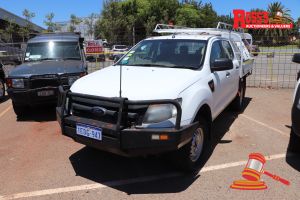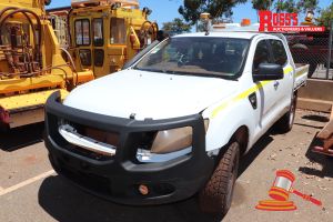 12/2012 FORD RANGER 2 DUAL CAB TRAY TOP, WHITE, 4X4, MANUAL, P/S, A/C, 3.2 6 SPEED DIESEL, REG# 1EDG947 LIC: 29.1.19, ODO# 78,377 KMS SHOWING ON CLOCK, VIN# MNAUMFF50CW151418, ENG# P5AT1035464, ROOF RACK, TOOL CHEST, SPARE TYRE, BEACON, ROLLCAGE, 2 WAY RADIO, FL# SC-0937, KEY# 60 (W7455)