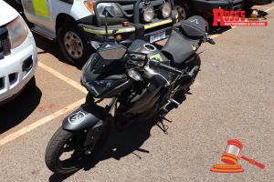 08/2011 KAWASAKI NINJA MOTORBIKE, BLACK, 2 AXLES, MANUAL, P/S, A/C, 250cc, ODO#16,017 KMS SHOWING, (STATUTORY WRITEOFF) VIN# JKEXMJ14CDA98640, ENG# EX250JEA98640, (SCRATCHES ON SIDE OF BIKE) KEY# 134