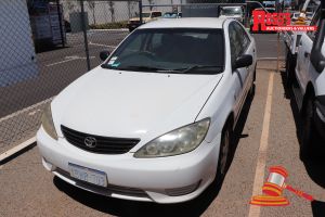 02/2005 TOYOTA CAMRY SEDAN, WHITE, 4x2, AUTO, P/S, A/C, V6 PETROL, REG# 1BWR703 LIC: 23.02.19, ODO# 207,254 KMS SHOWIN G ON CLOCK, VIN# 6T153XK360X305679, ENG# 1MZ1778213, KEY# 14 (W7624)