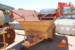 POLMAC BIN TRAILER, YELLOW, TANDEM, TOWED, (REG#UNLIC) VIN# NO ID PLATE, 2.8m x 1.5m TRAILER WITH ATTACHED FEED BIN CHUTE, AIR BRAKES