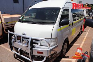 2011 TOYOTA HI ACE COMMUTER 10 SEATER BUS, WHITE, 2 AXLES, MANUAL, P/S, A/C, DIESEL 3.0 LITRE, (REG#UNLIC) ODO# 87,606 KMS SHOWING ON CLOCK, VIN# JTFST22P500012710, INTERNAL ROPS, CARGO BARRIER, TOWBAR, ALUMINIUM ROOBAR, MINE SPEC ROOF LIGHTING, FL# BS1057, (SOME DASH PANELS REMOVED) KEY#18 (W7720)