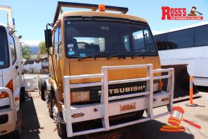 1992 MITSUBISHI CAB CHASSIS, MUSTARD, 8 X 4, MANUAL, P/S, A/C, DIESEL, REG# UNLIC, ODO# 492,623 KMS SHOWING ON CLOCK, VIN# 6F6SA14TNT020065, ENG# 6D22201201, ALUMINIUM BULLBAR, BEACON, ROPS, FL# WC03, KEY# 73 (W7508)