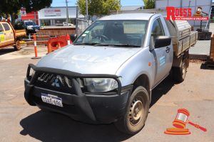 2009 MITSUBISHI TRITON TRAY TOP, GREY F/W, 4X4, MANUAL, P/S, A/C, DIESEL DI-D, REG# 1DAE696 LIC: 4.6.19, ODO# 224,496 KMS SHOWING ON CLOCK, VIN# MMAENKB809D002327, ENG# 4M41UCAN8974, TOOLBOX ON TRAY (ENGINE LIGHT ON REASON UNKNOWN, PAINT FADED ON BONNET & ROOF) KEY#52 (W7714)