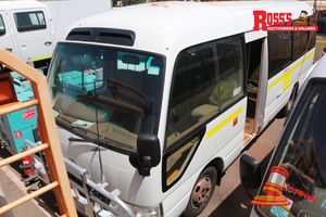 2009 TOYOTA COASTER BUS, WHITE, 4X2, MANUAL, P/S, A/C, DIESEL (REG#UNLIC) ODO# 144,929 KMS SHOWING ON CLOCK, VIN# JTGFC518404001294, ALUMINIUM BULLBAR, SPOTLIGHTS, TOW HITCH, REVERSING CAMERA, BEACON, 20 PASSENGER SEATS, FL# VL4358, FX01264573, KEY# 79 (W7673A)