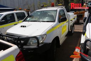 08/2012 TOYOTA HI-LUX DUAL CAB TRAY TOP, WHITE, 4X2, MANUAL, P/S, A/C, D4D, (REG#UNLIC) ODO# 89,398 KMS SHOWING ON CLOCK, VIN#MR0EZ1ZGX04156147, TRAY TOOLBOX, WORKLIGHTS BEACON, TOWHITCH, FL#PG13, KEY# 16 (W7796)
