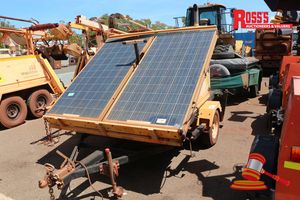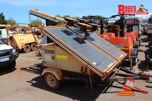 SINGLE AXLE TRAILER MOUNTED SOLAR POWERED LIGHTING TOWER, 4 HEAD TELESCOPIC TOWER, 8 BATTERIES & CONTROLLERS (PINTLE HITCH) FL# LP6002