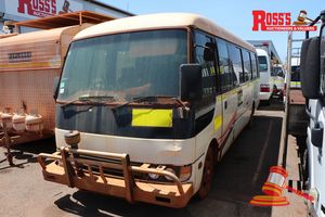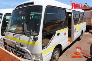 09/2012 TOYOTA COASTER BUS, WHITE, 4x 2, MANUAL, P/S, A/C, DIESEL 4 CYL 4000CC, REG#1ECF144 LIC: 18.12.18, ODO# 57,674KMS SHOWING ON CLOCK, VIN# JTGFP518404501783, ENG# N04CUH16306, 20 SEAT CAPACITY, INTERNAL ROPS, ALUMINIUM ROO BAR, REAR MOUNTED RHINO RACK WITH MINE SPEC LIGHTING, FL# SC0847, KEY#56 (W7463)