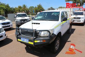 2012 TOYOTA HILUX 150 SERIES DUAL CAB, WHITE, 4X4, AUTO, P/S, A/C, D4D, (REG#UNLIC) ODO# 11,591 KMS SHOWING IN CLOCK, VIN# MR0FZ22G101183698, BULLBAR, SPOTLIGHTS, SIDE STEPS, SNORKEL, BEACON, WORKLIGHTS, DUAL TRAY TOOL BOXES, TOWBAR (NO HITCH) REAR TRAY STORAGE BOX, INTERNAL ROLLBAR, (REAR STORAGE BOX MISSING FRONT COVER) FL# RSM46, PRDA#KS, KEY#96 (W7807)