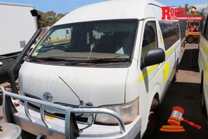 2010 TOYOTA HI-ACE COMMUTER BUS, WHITE, 2WD, MANUAL, P/S, A/C, DIESEL, (REG#UNLIC) ODO# 95,917 KMS SHOWING ON CLOCK, VIN# JTFST22P900009325, 14 SEATER BUS, INTERNAL ROPS, ALUMINIUM ROO BAR, FL# BS1078 (PART OF DASH REMOVED) PRDA#201812665731 KEY#162 (W7761)