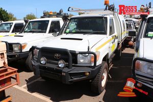 2011 TOYOTA LANDCRUISER UTILITY, WHITE, 4X4, MANUAL, P/S, A/C, V8 TURBO DIESEL, (REG#UNLIC) ODO# 46,383 KMS SHOWING ON CLOCK, VIN#JTELV71J700021311, BULLBAR, SPOTLIGHTS, SIDE STEPS, SNORKEL, ROPS, BEACON, WORKLIGHTS, PMG TYRE CRANE TRAY HOSE REEL, TRAY TOOL BOX, TOWBAR WITH HITCH, 2 X SPARE TYRES, FL#TM12, fx21287519, KEY#19 (W7801)