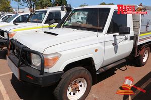 2012 TOYOTA LANDCRUISER 79 SERIES, TRAY TOP, WHITE, 4X4, MANUAL, P/S, A/C, V8 TURBO DIESEL, (REG#UNLIC) ODO# 130,342 KMS SHOWING ON CLOCK, VIN# JTELV71J800028476, BULLBAR, SPOTLIGHTS, TRADEMATE FULLY ENCLOSED, ALUMINIUM ROOF RACK, WORKLIGHTS, BEACON, SPARE TYRE CARRIERS X 2, PULL OUT DRAWER, TOWBAR, REVERSING CAMERA, (MISSING & BROKEN MIRRORS) FL# RC14, FX21287944, KEY#63 (W7815)