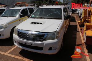 2012 TOYOTA HILUX DUAL CAB, WHITE, 4X2, MANUAL, P/S, A/C, D4D, (REG#UNLIC) ODO# 68,449 KMS SHOWING ON CLOCK, VIN# MR0EZ12G304156149, BEACON, WORKLIGHTS, SPARE TYRE, TOWBAR WITH HITCH, FL#044, KEY#14 (W7795)