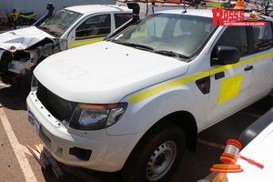 2013 FORD RANGER DUAL CAB, WHITE, 4X4, AUTO, P/S, A/C, DIESEL, REG#1EGP972 LIC: 23.2.19, ODO# N/S, VIN# MNAUMEF50DW176358, ENG# P5AT1049854, WORKLIGHTS, BEACON, TOWBAR (NO HITCH) FL# LV4453, (NO FRONT GRILL, DASH COMPONENTS REMOVED, CONSOLE PARTS REMOVED, NON RUNNER) PRDA#201901741676, NO KEY (W7765)