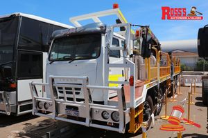 2012 ISUZU FVZ 1400 SERVICE TRUCK, WHITE, 6X4, AUTO, P/S, A/C, DIESEL, (REG#UNLIC) ODO# 226,170 KMS SHOWING ON CLOCK, VIN# JALFVZ34568700271, ROLLOVER PROTECTION, WORKLIGHTS, TOOL BOX, HOSE REELS & PUMPS, GREASE POD, OIL & FUEL TANKS, HAND RAILS (PASSENGER SIDE DOOR DAMAGE, REAR TRAY DAMAGE) KEY#148 (W7778)