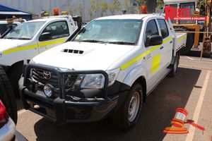 2012 TOYOTA HI-LUX DUAL CAB, WHITE, 4X4, AUTO, P/S, A/C, DIESEL, (REG#UNLIC) ODO# 82,679 KMS SHOWING ON CLOCK, VIN# MR0FZ22G201179661, BULLBAR, SPOTLIGHTS, WORKLIGHTS, BEACON, TOOLBOX, TOWBAR, NO HITCH, FL# LV4927, PRDA#201812665731 (BROKEN DRIVERS SIDE PASSENGER WINDOW, GLOVE BOX REMOVED) KEY#50 (W7763)