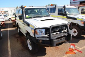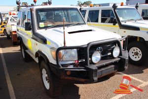 2011 TOYOTA LANDCRUISER 76 SERIES DUAL CAB, WHITE, 4X4, MANUAL, P/S, A/C, V8 TURBO DIESEL (REG#UNLIC) ODO# 335,718 KMS SHOWING ON CLOCK, VIN# JTEEV73J000006140, BULLBAR, WORKLIGHTS, BEACON, TOWBAR, SPARE TYRE, TYRE CRANE, FL# TM7, PRDA KS/TM7, KEY# 14 (W7905)